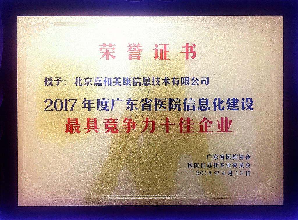 2017年度廣東省醫(yī)院信息化建設(shè)最具競(jìng)爭(zhēng)力十佳企業(yè)