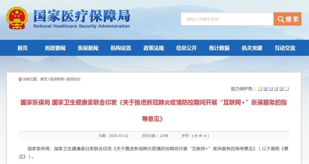 3月2日,國家醫(yī)保局、國家衛(wèi)生健康委聯(lián)合印發(fā)《關(guān)于推進(jìn)新冠肺炎疫情防控期間開展“互聯(lián)網(wǎng)+”醫(yī)保服務(wù)的指導(dǎo)意見》(以下簡稱《意見》)。