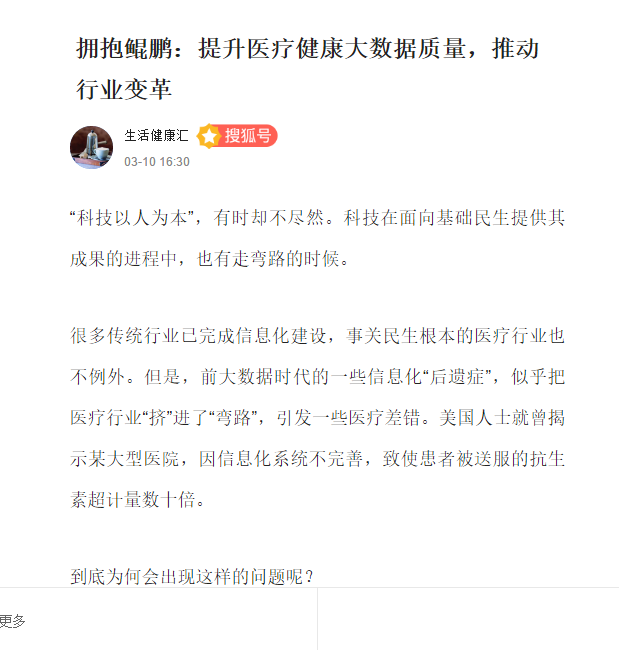 4. 在患者服務(wù)應(yīng)用環(huán)節(jié),嘉和美康以患者為中心,建立覆蓋診前、診中、診后的互聯(lián)網(wǎng)醫(yī)療服務(wù)體系。在診前,平臺提供基于醫(yī)學(xué)文獻以及臨床診療實踐知識庫的問診系統(tǒng),該系統(tǒng)可根據(jù)患者的主訴癥狀,模擬醫(yī)生來展開相關(guān)的詢問,并針對患者回答的問題,進而形成一份初步的診斷報告,幫助醫(yī)生提前了解患者情況。在診中,平臺基于大量的臨床數(shù)據(jù)的匯集,為醫(yī)生提供更加及時的預(yù)警和提示。在診后,則為患者提供個性化、針對性的疾病管理,包括診后隨訪、用藥指導(dǎo)等功能,以提高患者健康水平。
