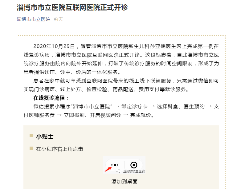 互聯(lián)網(wǎng)醫(yī)療建設(shè)提速,淄博市市立醫(yī)院積極推進