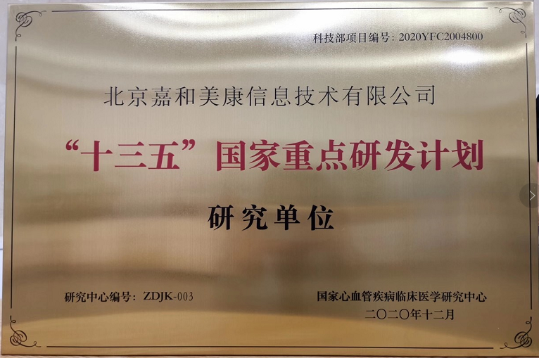 2020年,嘉和美康參與了國家重點研發(fā)計劃課題研究,并成為“十三五”國家重點研發(fā)計劃研究單位。嘉和美康將充分利用自身技術(shù)實力,嚴格按照重大專項的要求和安排,不斷鉆研,為國家重點科技項目做出應(yīng)有的學術(shù)和科研貢獻。