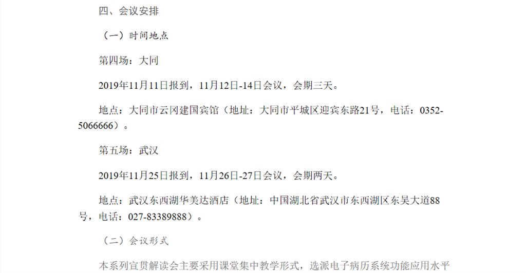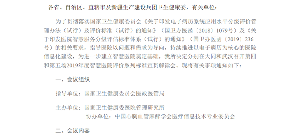 關(guān)于召開2019年度智慧醫(yī)院評價系列標準宣貫解讀會(大同、武漢場)的通知