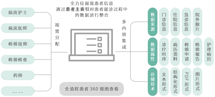患者統(tǒng)一視圖是基于數(shù)據(jù)中心的臨床集成類典型應(yīng)用,將患者全生命周期就診信息按照時(shí)間序列進(jìn)行分析和展現(xiàn),方便醫(yī)生對患者特征和既往病史進(jìn)行全盤了解,有效提高了臨床診療的效率和效果。