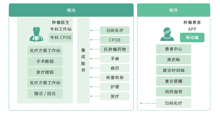 聚焦腫瘤疾病??圃\療特點,打造覆蓋患者診前、診中、診后的全流程專科管理系統(tǒng),形成連接疾病診斷、MDT 會診、影像調(diào)閱、放化療方案制定、患者隨訪等關鍵環(huán)節(jié)的一體化診療閉環(huán)。