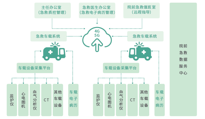 能夠與車載醫(yī)療設(shè)備、信息系統(tǒng)(包括120 急救中心系統(tǒng)、分中心急救系統(tǒng)、院內(nèi)臨床信息系統(tǒng))進(jìn)行數(shù)據(jù)實(shí)時(shí)共享交換,提高急救診療效率。