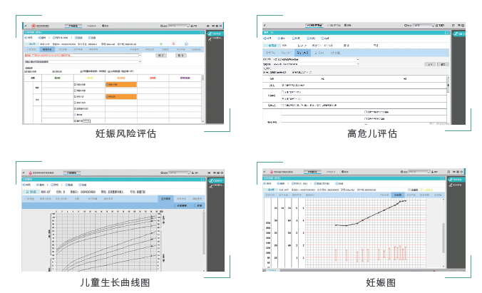 系統(tǒng)內(nèi)置專科知識(shí)庫,針對(duì)不同孕周、不同臨床狀態(tài)給予自動(dòng)展示??勺詣?dòng)繪制妊娠圖及生長曲線圖,自動(dòng)抓取檔案管理過程中各環(huán)節(jié)點(diǎn)數(shù)據(jù),給予退檔、追訪等提醒,并自動(dòng)計(jì)算兒童體檢時(shí)間、BMI、預(yù)產(chǎn)期等。