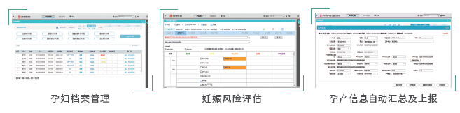 進(jìn)行智能妊娠風(fēng)險(xiǎn)評(píng)估,進(jìn)行孕婦檔案管理,通過系統(tǒng)錄入及對(duì)接其他系統(tǒng)獲取相應(yīng)數(shù)據(jù),進(jìn)行數(shù)據(jù)自動(dòng)上報(bào)。