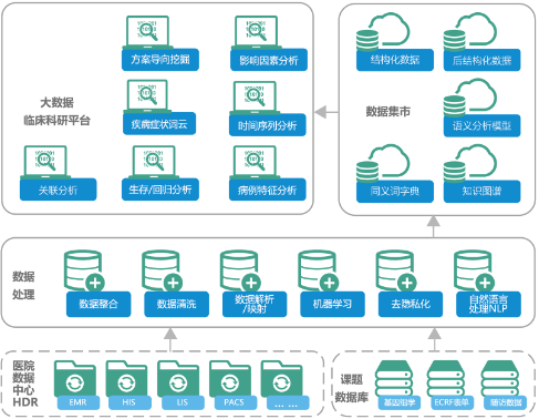 大數(shù)據(jù)科研分析平臺(tái)是以人工智能技術(shù)為核心驅(qū)動(dòng)、以院內(nèi)外真實(shí)診療數(shù)據(jù)為基礎(chǔ)支撐的創(chuàng)新型臨床-科研一站式服務(wù)體系。通過(guò)對(duì)疾病數(shù)據(jù)的自動(dòng)整合、處理,可輔助醫(yī)生快速建立覆蓋多病種、全變量的高質(zhì)量專病數(shù)據(jù)庫(kù);并在此基礎(chǔ)上,利用相應(yīng)算法模型,快速實(shí)現(xiàn)對(duì)數(shù)據(jù)的深度挖掘和多維分析,提升科研效率及質(zhì)量,促進(jìn)成果轉(zhuǎn)化,實(shí)現(xiàn)臨床-科研協(xié)同發(fā)展。